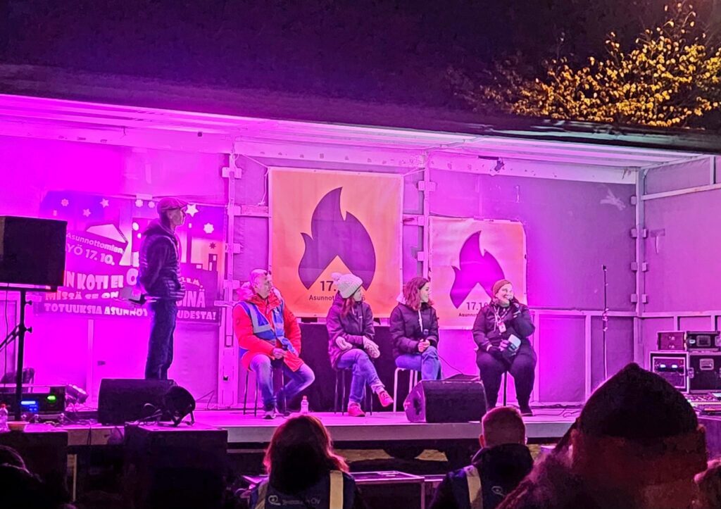 Niemi, Veera & Perälä, Riikka (2023) Oikeus kotiin kehittyvissä kaupungeissa. Asunnottomien yö, Päätapahtuma, Helsingin Kansalaistori, 17.10.2023.